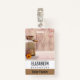 Personalised name badge with a rustic country design. An old rusting milk can with a pretty orange gerbera flower by its side. Wheat and faded red poppies in the background set against a faint wood panel. Wood is just an image, not real.