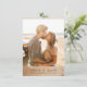Modern wedding invitation design features a large vertical photo on the front above your names in lowercase serif italics with an elegant ampersand and your wedding date against a beige farmhouse wood slats image. Cards reverse to three square photos at the top, classic wedding typography in the middle, and a horizontal photo at the bottom on the same wood. Minimalist wood wedding with 5 photo grid collage. For our template photos, we chose a neutral earthy colour scheme of pale blue, white, and beige, but this versatile design was made with customisation in mind and is sure to look good with any colour combination. Click on "Personalise this template" to change the text and upload your own photos. If you want to edit fonts, placement, or colours, simply scroll to "Click to customise further" and use the Zazzle design tool. Feel free to contact me through the button below for any design-related questions. Visit our store for more invitations!
