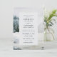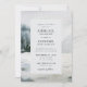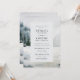 Elements: watercolor painting of rustic mountain lake in winter; elegant serif and sans serif fonts. Colours: blue, green, grey, white, offwhite. Themes: mountains, lakes, outdoor wedding, winter wedding, elegant, rustic, impressionist, watercolor, snowy mountains. Collection: Rustic Mountain Lake Watercolor Wedding Collection. Product Type: Classic Invitation - Vertical