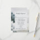 Elements: watercolor painting of rustic mountain lake in winter; elegant serif and sans serif fonts. Colours: blue, green, grey, white, offwhite. Themes: mountains, lakes, outdoor wedding, winter wedding, elegant, rustic, impressionist, watercolor, snowy mountains. Collection: Rustic Mountain Lake Watercolor Wedding Collection. Product Type: RSVP w/Menu Choice
