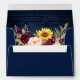 Rustic Blue Wood and Watercolor Burgundy Floral Invitation Envelope includes burgundy roses, pink roses, sunflower and greenery.