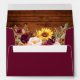 Rustic Wood and Watercolor Burgundy Floral Invitation Envelope includes burgundy roses, pink roses, sunflower and greenery.