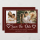 Modern handwritten script hearts rustic burgundy save the date wedding with 2 engagement photos. ++++++++++++++ Suitable for summer autumn fall or winter weddings.