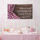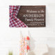 Celebrate your family reunion with this perfect picnic or barbecue banner - red and white chequerboard plaid table cloth covering a dark wood texture design with modern typography showcasing your family name and celebration venue and date in an easily customisable way. Great as a welcome sign for any family gathering!