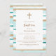 Rustic Modern Gold Stripe Cross Boy Baptism Invitation