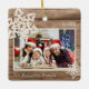 Rustic Modern Photo DIY Snowflake Family Name Wood Ceramic Ornament