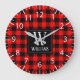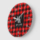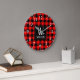 Rustic Modern Red Buffalo Plaid Chequered Monogram Large Clock