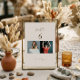 This unique table number card features two photo slots where you can add the bride and groom's photo of when they were of the age of the respective table number. It has a beautiful photo frame and customisable text. This elegant template allows to easily add the table number, names, date and personal photo. Maximum customisation makes it easy to personalise for any rustic, modern, or bohemian-style wedding. This unique idea can make your wedding for fun and interesting.