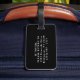 This was purchased as part of a 40th Birthday present for my nephew who is going to Vegas. It is made of high quality, very study and we decided only to put his name on the back of the tag, but you can add a full address if you so wish.