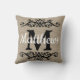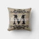 © 2021 Socialite Designs Inc. Customisable monogram and name burlap/linen look pillow. The top and bottom of the pillow has vintage flourishes.