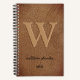Rustic monogram gold script name brown leather notebook