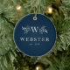Rustic monogram navy blue newlywed photo ceramic tree decoration