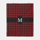 Rustic Monogram Red And Black Plaid Pattern Fleece Blanket.