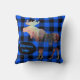 Rustic Moose Blue Plaid Add Name Throw Pillow