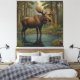 Loose yourself in the enchanting allure of this elegant bohemian moose artwork, where nature's grandeur meets timeless artistry. Set against a lush forest backdrop, this exquisite piece captures the serene beauty of a verdant woodland, rich with intricate details of flora and towering trees. The moose, standing majestically in a tranquil body of water, observes its surroundings amidst a tapestry of lush foliage, embodying the harmonious blend of botanical organic forms and nature's splendour. In the distance, the majestic mountains rise, completing the idyllic scene. Each element of the artwork, from the curling tendrils of the plants to the fine veining on the moose's antlers, is rendered with meticulous care, evoking a sense of nostalgia and wonder. This piece is a perfect homage to the elegance and intricacy of Art Nouveau design, offering a timeless window into a world where nature and art intertwine.