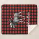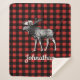 Rustic sherpa fleece blanket with a rustic moose theme plus red and black lumberjack style plaid. It also features white script in the name of your choosing. This blanket makes a fantastic gift!