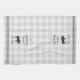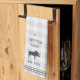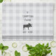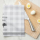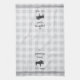 Customise your kitchen with this cute personalised towel featuring your family name or house name and year established in rich charcoal grey lettering accented with a moose illustration on a tonal plaid background.