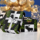 Wrap your gifts in this black and white moose print paper. This rustic-designed paper features a moose silhouette with pine tree branches.