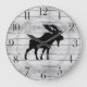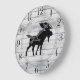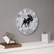 Rustic grey faux barn wood moose family name large clock for your cabin, lake house, tiny house or any rustic woodlands, wilderness, or country setting. The stylish script and serif typeface contrasts gives this design a contemporary rustic vibe.