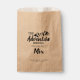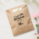 The design features the words 'The Adventure begins in the perfect mix' in a modern script typography with a mountains accent. This cute wedding favour bag is perfect for sending guests home with cookies, candy or other sweet treats. Customise it with the couple's names and wedding date.