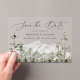 Rustic save the date cards featuring 'Save the Date' in elegant calligraphy script, complemented by a scenic landscape of watercolor evergreen trees and mountains on a frosted or transparent acrylic background. Personalise these woodland mountain save the dates with your names, wedding date, and location. Perfect for couples hosting destination weddings in the mountains or embracing nature-inspired wedding themes.