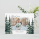 Trendy rustic elegant wedding thank you personalised card with green watercolor pine tree scenery, your custom photo, text message, and signature.