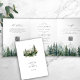 Rustic elegant tri fold wedding invitation with watercolor pine trees forest landscape and with a chic simple classy minimalist typography script. +++++++++++ Suitable for summer, autumn fall or winter mountains, outdoor camping adventures woodland wilderness evergreen destination weddings.