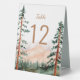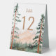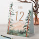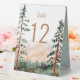 Rustic elegance in this table card featuring a landscape setting with mountains, pine trees, and a green meadow. NOTE: You will need to personalise each table card individually and add to your cart.