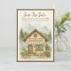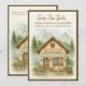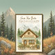 This wedding save the date invitation reflects the charm of a rustic mountain wedding, blending the warmth of a cosy chalet with the elegance of nature-inspired details. Surrounded by alpine views, pine trees, and outdoor seating, it creates a romantic destination atmosphere that feels both timeless and welcoming. The soft watercolor aesthetic highlights handcrafted beauty, making it ideal for couples who envision a celebration in the mountains, outdoors, or at a cosy rustic venue.