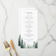 Rustic modern mountain pine tree forest destination wedding menu template card with elegant chic typography and a trendy nature landscape with watercolor woods,