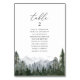 Rustic Mountain Pine Tree Wedding Table Number