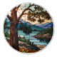 Rustic mountain range landscape stain glass ceramic knob