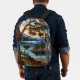 Rustic mountain range landscape stain glass printed backpack