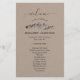 Beautiful MOUNTAIN WEDDING program paper sheet design featuring a sketched mountain motif and a big "welcome" in an elegant script as well as the wedding program details on a rustic kraft-textured background for you to personalise.