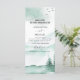 Rustic Mountain Forest Watercolor Spring Wedding Program Card on white background - includes beautiful and elegant script typography with modern outdoor botanical trees, mountains, birds and greenery for the special Wedding day celebration.