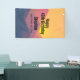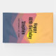 Birthday party banner with a graphic illustration featuring many mountain tops with bright yellow sunlight setting behind the mountains. Made with geometric polygonal shapes.Simple minimalist design. Colours range from dark blue to desert red.