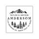 This stamp is perfect for any outdoorsy couple looking for a return address stamp for all their special occasions. This stamp has a round shape with 3 mountain peaks at the top, your names in the centre, and some sketched pine trees at the bottom. Along the bottom edge is your return address in a curve. This stamp can be easily personalised by clicking the "personalise this template" area.