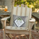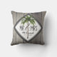 Rustic Mr And Mrs Grey Monogram Palm Tree Newlywed Outdoor Pillow is designed with grey faux barn wood like background on both sides. The front and back have a beautiful green palm tree on the centre of white diamond shape bordered frame. The text is "Mr & Mrs" in trendy skinny lettering. Newlywed's last name is in black calligraphy script lettering. The established date is below the name.