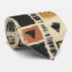 Earthy geometric pattern necktie inspired by tribal mudcloth textiles, featuring hand-painted rectangles, diamonds, and triangles in charcoal black and terracotta on a textured beige background. A warm boho design ideal for rustic décor lovers, artisan style fans, and anyone drawn to earthy geometric aesthetics.