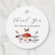 Rustic and boho kid's birthday party favor tag featuring watercolor illustration of mushrooms and moths. The text says "thank you for coming to my party!"
