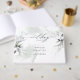 Wedding Guest Book | Modern rustic smokey grey green ethereal leaves and watercolor wash, this beautiful hand painted watercolor illustration offers shades of muted green with gold fleck highlights. Hand written script calligraphy is combined with a minimalist, contemporary style font. A trendy look for all seasons. This is part of a wedding stationery collection Watercolor Dusty Green Foliage with matching wedding accessories. © WhimsicalArtwork created for the BarefootBride™