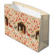 Religious and charming Christmas gift bag featuring a rustic, repeating pattern of the Nativity scene (Manger, Mary, Joseph, Baby Jesus) alongside farm animals, stars, and red Christmas trees/snowflakes. Ideal for church gifts, family presents, or anyone celebrating the true meaning of Christmas. Large, durable paper bag with handles.