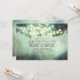 Charming rustic country wedding invitation with vintage nature design: old oak tree branches, hanging strings of light, wildflowers and summer field grass. Perfect teal shades invite for outdoor wedding in the garden, ranch, farm or forest.