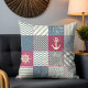Rustic Nautical Patchwork Stripes Anchor Pattern Cushion