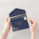 Rustic Navy and Gold String Lights Wedding All In One Invitation