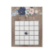 Rustic wood baby shower bingo game tear pad featuring a beautiful navy blue & blush pink floral arrangement