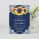 Rustic Navy Blue Burlap Lace Sunflower Wedding Invitation