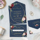 Rustic Navy Blue Gold Geometric Wedding All In One Invitation