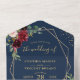 The combination of rich navy blue and luxurious gold accents, along with the contemporary geometric design, sets the tone for a stylish and elegant wedding. The all-in-one format includes a detachable RSVP card for easy guest responses, making the planning process seamless. Use Zazzle's design tool to customise this invitation and add your own touch of personalisation to create a memorable keepsake for your guests.