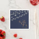 Delight your guests with this modern and simple wedding napkin. The dark navy background is the perfect backdrop for the twinkling string lights that give the effect of sparkling in the night time. Complete with gold ampersand and your initials and wedding date. Please see other items in this collection.